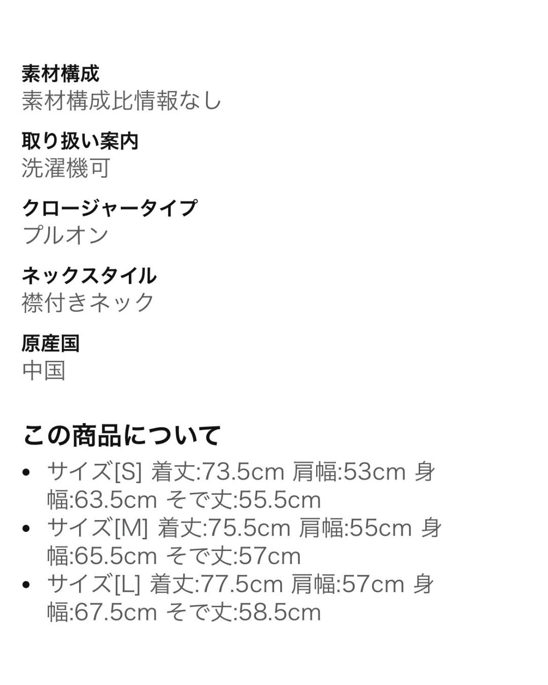 着丈/身幅/袖丈/肩幅